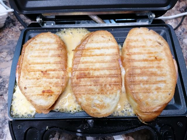В комплект поставки входит три сменных насадки с антипригарным покрытием: сэндвич, венские вафли и гриль. Модель оснащена двухуровневым замком для максимально плотного прижатия панелей в процессе приготовления некоторых блюд.