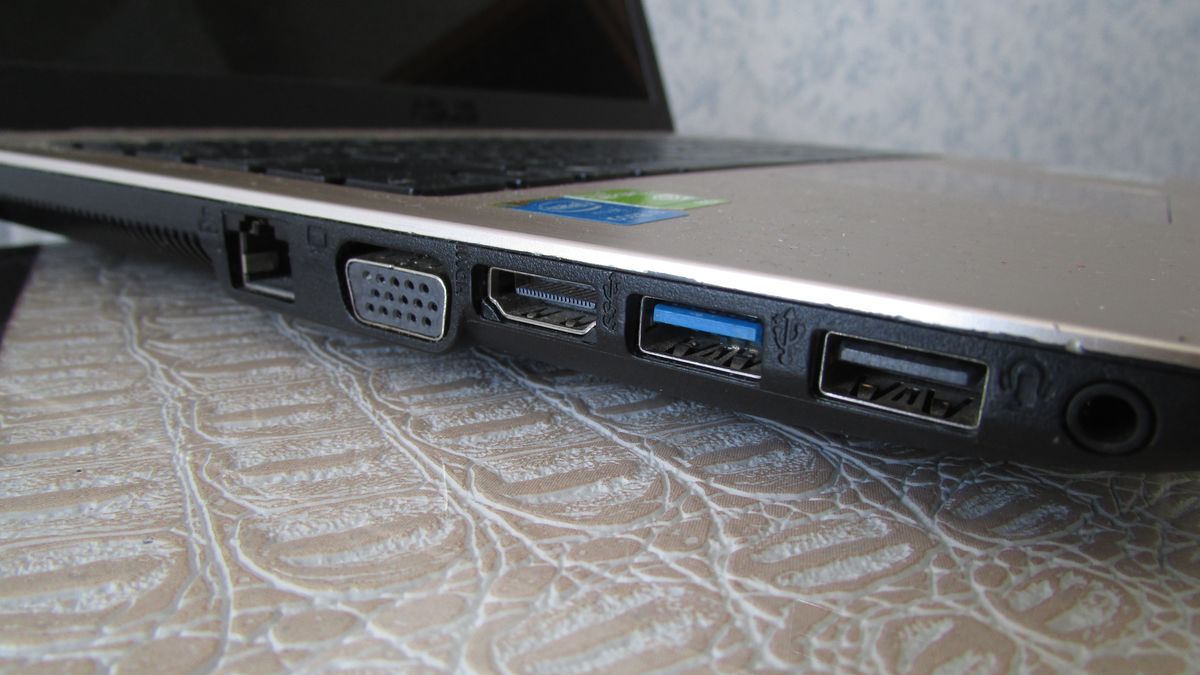 Asus X540LA оснащен довольно скромным количеством портов. Левая сторона устройства оснащена портом питания, разъемом USB 3.1, USB 3.0, USB 2.0, и видеовыходом HDMI. На правой грани находится разъем VGA.