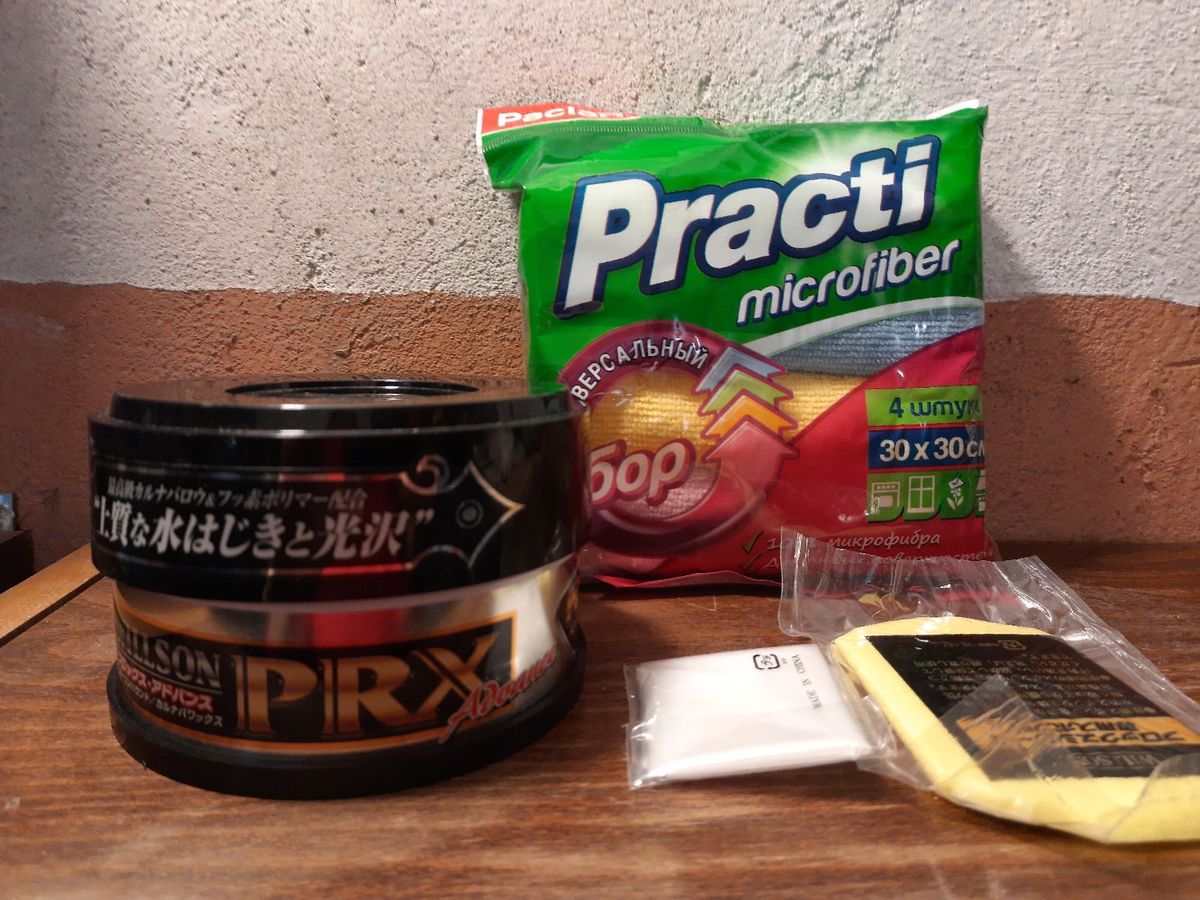 И вот с новым автомобилем я решил попробовать новое средство. Изучив отзывы людей в автомобильных сообществах решил разориться и купить Willson PRX. Это твердый японский воск, который обошелся мне в 1400 рублей со скидкой. Произведен действительно в Японии и ни слова на русском нет, хорошо сверху поставщик наклеил бумажку с переводом. Состав твердый с приятным запахом. Я так и не понял чем пахнет, то ли мятой, то ли арбузом, то ли жвачкой. Но запах понравился!