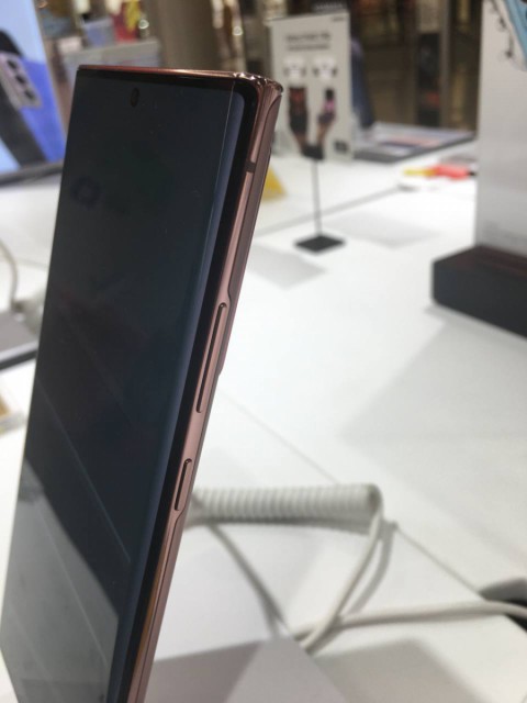 Спереди Galaxynote 20 выглядит современно и элегантно. Размеры корпуса устройства составляют 161.6 × 75.2 × 8.3 мм, а вес – 192 грамма. Смартфон получил прямоугольную симметричную конструкцию с 67-дюймовым дисплеем. Разумеется, это InfinitiOс круглым отверстием посередине для фронтальной камеры. Причем это отверстие довольно большое, даже больше, чем у GalaxyNote 10 Light. Защитное стекло на передней панели это GorillaGlass 5, которое впервые использовалось еще в GalaxyNote 7. Внизу устройства находится микрофон, динамик и перо S-Pen с левой стороны. Заядлым пользователям устройств данной линейки придется приноровиться к новому расположению стилуса. Также на правой стороне смартфона есть качелька регулировки громкости и кнопка питания. Сверху расположен еще один микрофон и слот для двух SIM-карт. К сожалению, microsd карту сюда не поставить.