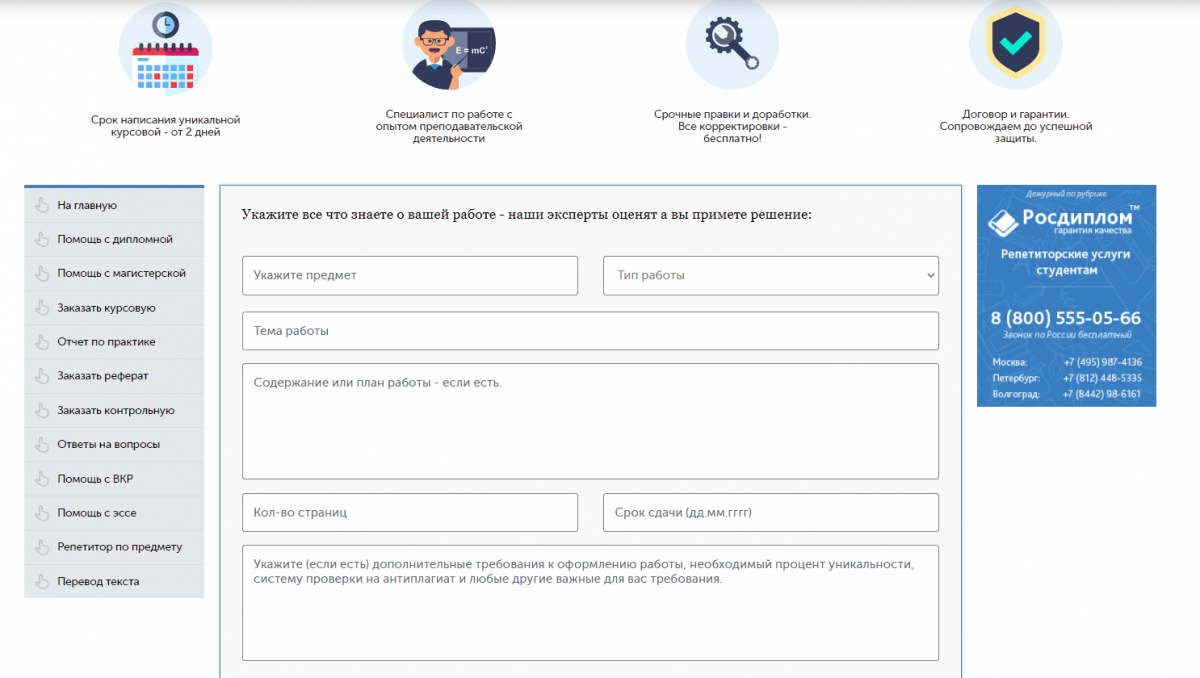 В общем, недолго думая, я заполнил довольно простую форму заказа, где описал всё, что мне нужно максимально подробно. В тот же день мне позвонила менеджерка Ксения, которая согласовала все условия и попросила внести предоплату. Казалось бы, идея вносить предоплату, мягко говоря, не самая хорошая, но я подумал, что если бы сайт был мошенническим, то он бы не существовал так долго и не пользовался бы большой популярностью у студентов, отзывы в интернете тому отличное подтверждение.