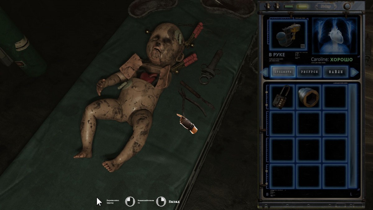Многие недочёты, что есть в игре, конечно, можно объяснить желанием приблизить Tormented Souls к тем классическим хоррор-играм. Мол просто старались скопировать, как было тогда. Так-то оно так, пускай, но порой разработчики явно где-то перегнули палку. То какой-то пиксель-хантингом приходится заниматься, то прям совсем банальными и простейшими вещами, будто ты в каком-то симуляторе. По типу «Перед тем, как залить бензин в канистру, изучи её внимательно и открой на ней крышку». Ну, блин, зачем уж настолько подробно? Записки складируются в инвентаре не по мере поступления, а объединяются в дневники, из-за чего потом сидишь и по одному их открываешь, чтобы найти подсказку, которую недавно подобрали, но не можешь понять, куда она добавилась в итоге. Ещё и зачем-то прикрутили курсор, вместо удобного переключения бампером или D-Pad-ом. Да, проблема консоли, но почему?