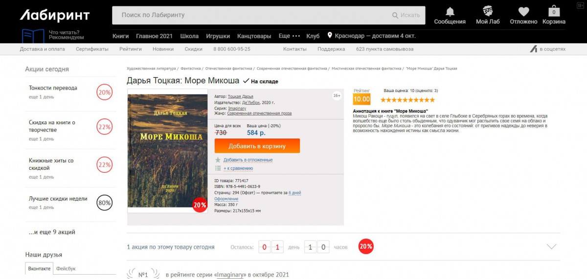 Плюс иногда Лабиринт искусственно стимулирует продажи, вывешивая плашку «скоро закончится» или «осталась 1 штука на складе», тогда как это все не соответствует действительности. И все же Лабиринт – один из лучших порталов по продаже художественной литературы, нон-фикшн, комиксов и манги в рунете.