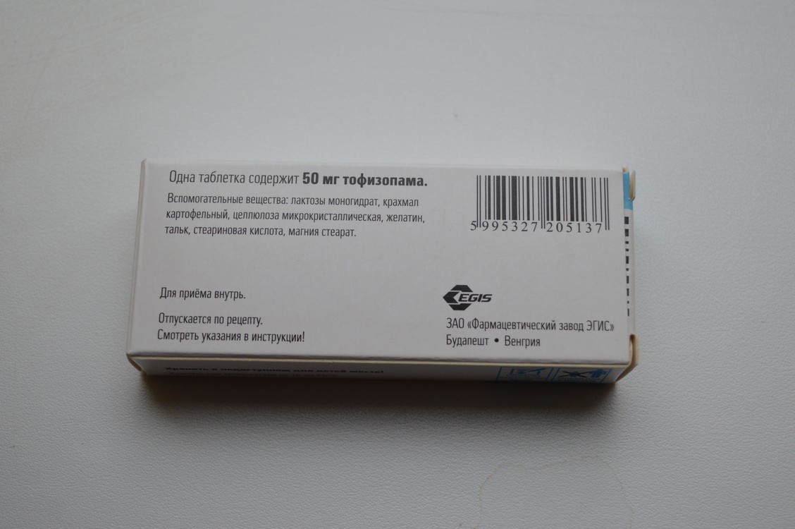 В состав препарата входит действующее вещество Тофизопам. Он обладает анксиолитическим действием, но при этом оказывает еще и противосудорожное, успокаивающее, снотворное действие, расслабляет мышцы.