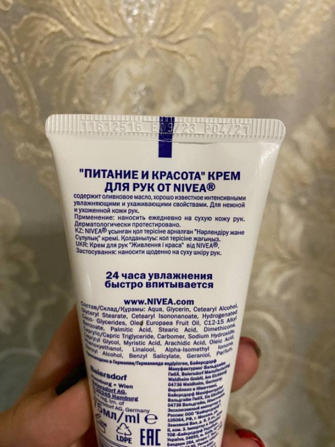 Эффект от использования крема для рук Nivea«Питание и красота»